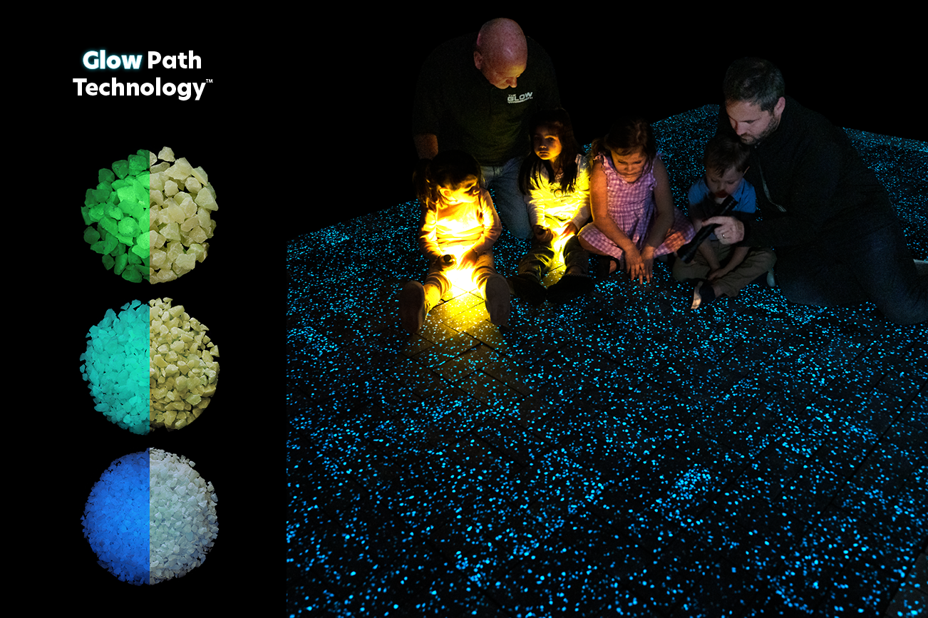 From driveways and pool decks to commercial flooring and public spaces, our silica-based glow stones are built into the surface itself, creating durable, radiant pathways that come alive at night while remaining elegant and natural by day.